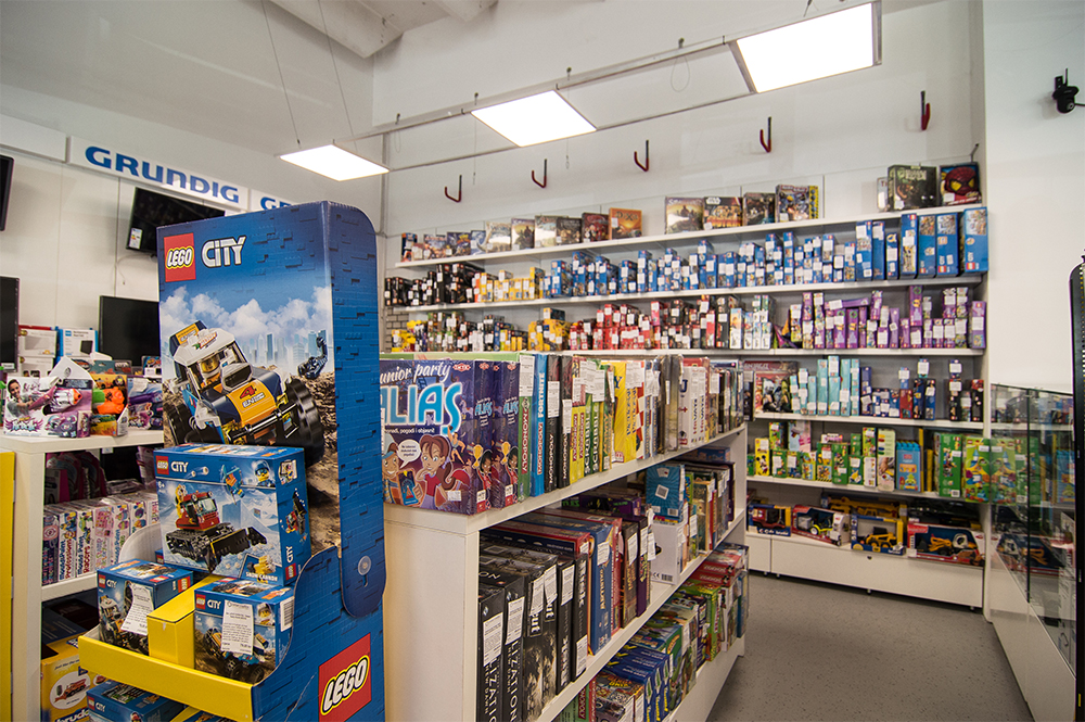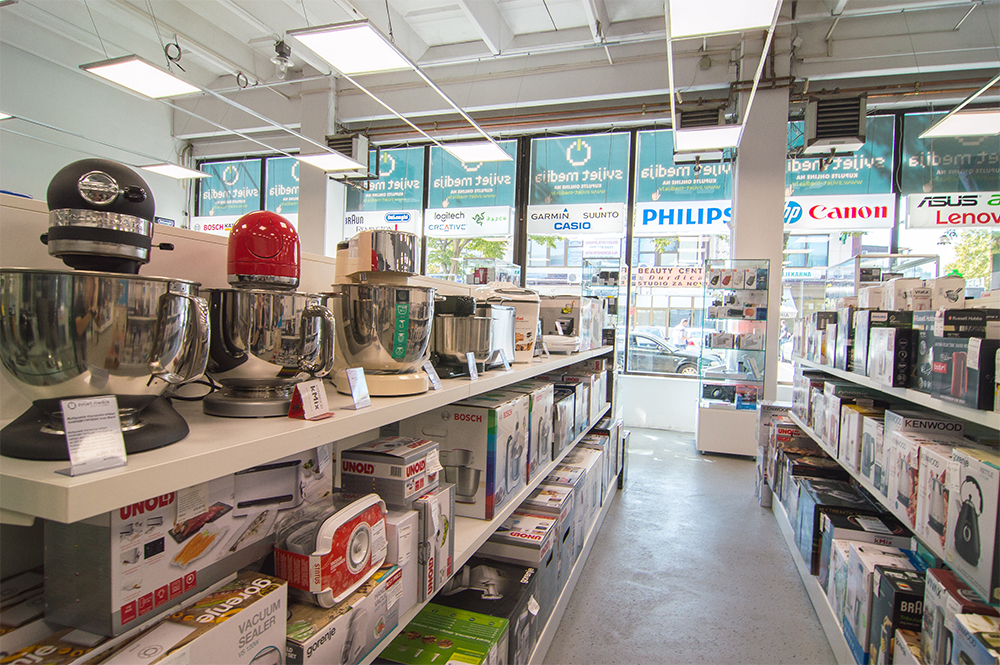 Svijet Medija u Dubravi nudi širok asortiman tehničke robe: televizori, HiFi, mobiteli, računala i računalne komponente, igraće konzole, fotoaparati, bijela tehnika, mali kućanski aparati, uređaji za osobnu njegu i mnoge druge proizvode. Uz to u ponudi ima igračke: društvene igre, LEGO i ostale proizvode za igru. Od navedene ponude izdvajamo sljedeće brandove: Samsung, Sony, Delonghi, Philips, JBL, Garmin, Lego, KitchenAid, Suunto i mnoge druge poznate svjetske brandove. Također, u ponudi je i veliki asortiman Bosch i Karcher proizvoda.