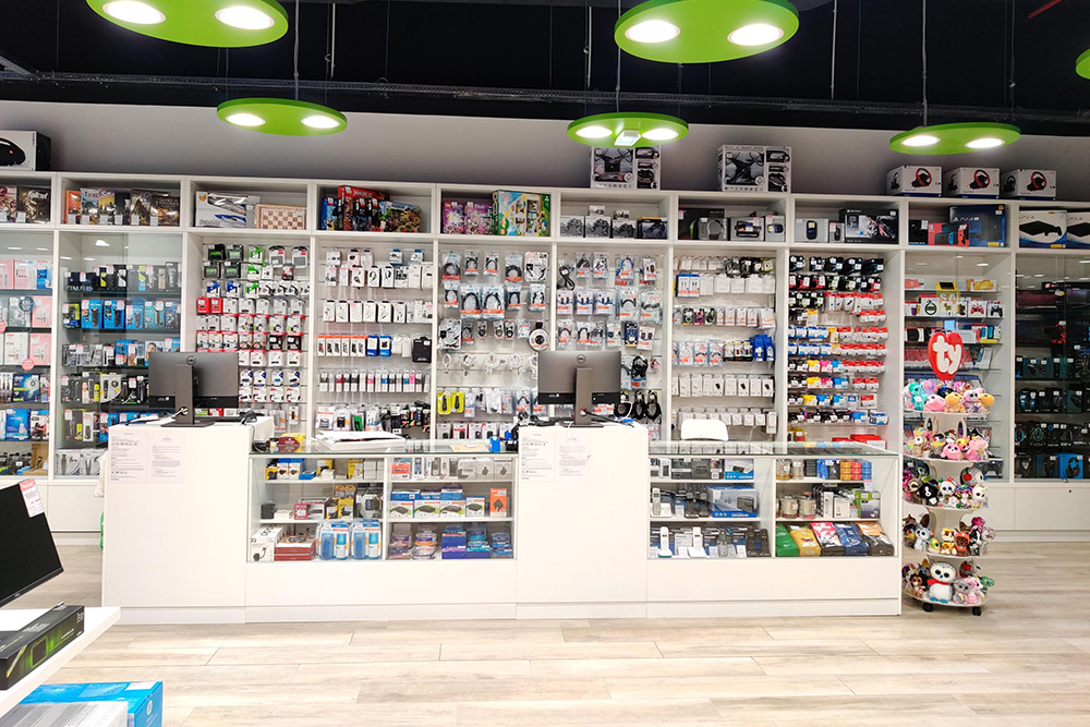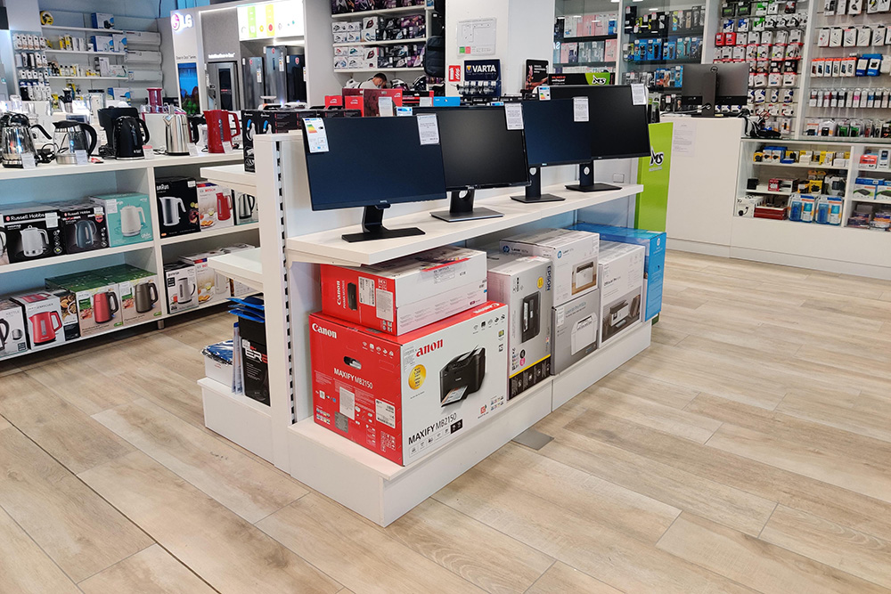Poslovnica nudi širok asortiman konzumne tehničke robe i informatike: televizore, Hi-Fi, mobitele, tablete, fotoaparate i kamere, laptope i stolna računala, printere i skenere, projektore.