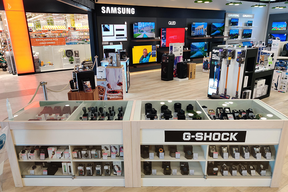 Uređaji u poslovnici su renomiranih svjetskih brandova kao što su: Apple, Samsung, Sony, LG, HP, Canon, Nikon, Grundig, Philips, JBL, Bose, Garmin, Suunto, Casio, GoPro, Nintendo, Playstation, Lego, KitchenAid, Delonghi, Dyson, Remington, Braun, Kenwood, Bosch, Gorenje, Huawei, Karcher, Xiaomi i još mnoge druge svjetske marke.