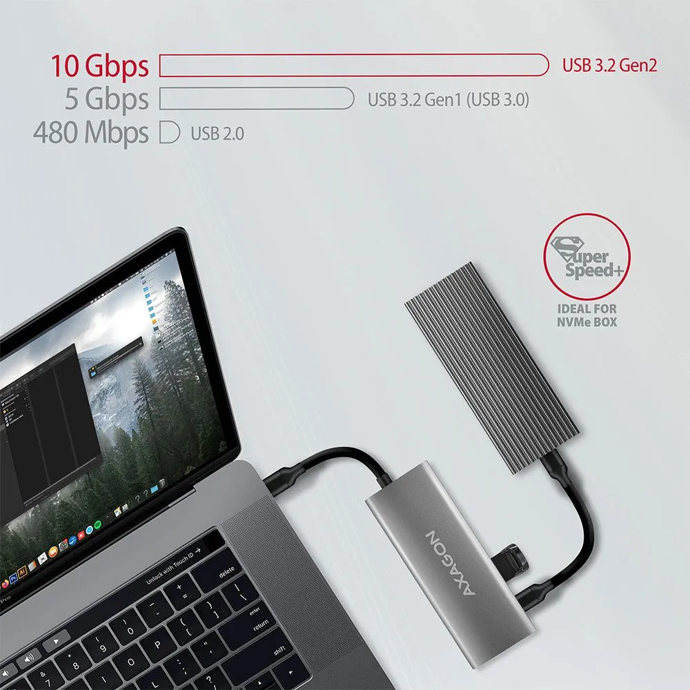 Superbrzi USB-C 3.2 Gen 2 koncentrator AXAGON HMC-5G2 SPEEDSTER 5H proširuje vaše prijenosno računalo, računalo ili telefon s pet priključaka. Možete jednostavno i brzo spojiti do četiri USB uređaja i HDMI zaslon na svoje računalo u isto vrijeme putem dvostranog USB-C konektora. Također dobivate mogućnost opskrbe prijenosnog računala koristeći Power Delivery tehnologiju u isto vrijeme. Hub će vam pružiti jednostavnu i kompaktnu stanicu za prijenosno računalo.