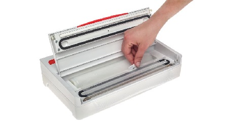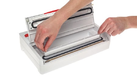 Prilikom korištenja vakuumske folije u roli najprije odredite dužinu vrećice i odrežite je priloženim nožem.