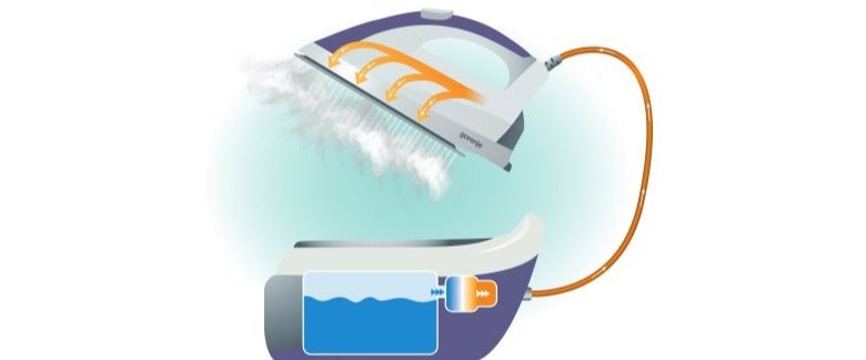 Uz pomoć ugrađene pumpe, para se stvara pod jakim pritiskom i dublje prodire u tkaninu. To osigurava lakše uklanjanje tvrdoglavih nabora. Para se ravnomjerno raspoređuje. Ne curi voda, što je izuzetno važno u slučaju osjetljivih tkanina jer kapi vode mogu uzrokovati mrlje.