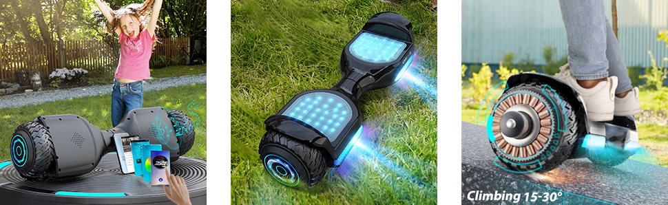 Šarena LED svjetla, trepćući kotači i svjetleće papučice su super zabavni, ujedno su i signal zaštite zbog kojeg se osjećate sigurno u mraku, osvjetljavaju Vaša večernja putovanja. Za fanove hoverboarda LED trepćuća svjetla čine hoverboard cool uređajem.
