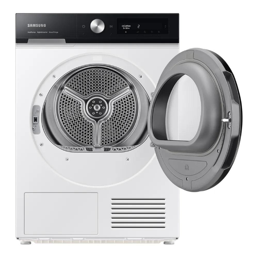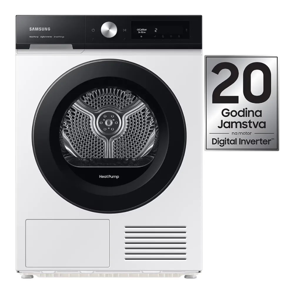 Kondenzacijska sušilica rublja Samsung DV90BB9445GHS7 svojim modernim dizajnom savršeno se uklapa u svaki prostor. Tehnologija toplinske crpke nudi vam energetski učinkovitiji, isplativiji i nježniji način sušenja vaše odjeće. Uživajte u bržem i preciznijem sušenju koje blaže djeluje na odjeću i smanjuje potrošnju energije za 10%. Tehnologija sušenja pomoću umjetne inteligencije s više senzora nadzire vlažnost odjeće u stvarnom vremenu i pametno stvara optimalnu količinu topline prilagođenu težini i sadržaju vlažnosti za svako punjenje. Utrošite manje vremena na sušenje i dobro se pobrinite za svoju odjeću. Kada je aktivirana, QuickDrive tehnologija skraćuje vrijeme sušenja rublja do 35% i štedi energiju. Za razliku od uobičajenih sušilica, tehnologija kompresora s pretvaračem automatski prilagođava brzinu na temelju unutarnje temperature i svrhe njege. Rublje sušite učinkovito i s lakoćom. Personalizira ciklus sušenja pamćenjem vaših navika, predlaganjem ciklusa i prikazivanjem pravodobnih informacija. Odaberite smjer otvaranja reverzibilnih vrata koji najbolje odgovara rasporedu vašeg doma te jednostavno promijenite stranu otvaranja vrata kako bi odgovarala vašim navikama.