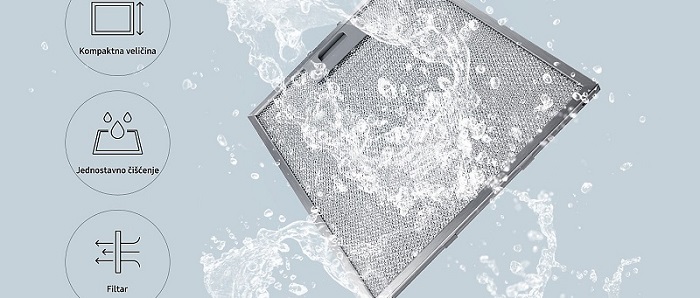 Trajan aluminijski filtar koji se može prati štiti ispušni ventilator i produžava vijek trajanja motora. Hvata ulje i prašinu prije nego što začepi motor ili protok zraka. Treba ga čistiti samo jednom svaka 3 do 4 tjedna, što je jednostavno jer je periv i dovoljno malen da stane u perilicu za suđe.