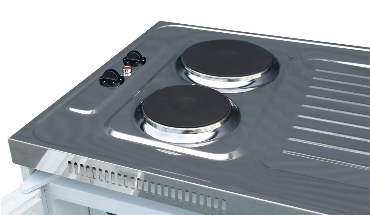 Dolazi u bijeloj boji. Set mini kuhinje NE sadrži hladnjak VIVAX TTR-93 (može se naknadno kupiti), inox ploču MK-0210XA s integriranim grijačim pločama i sudoperom te ormarić od kvalitetnog iverala dimenzija 100x85x60 cm.