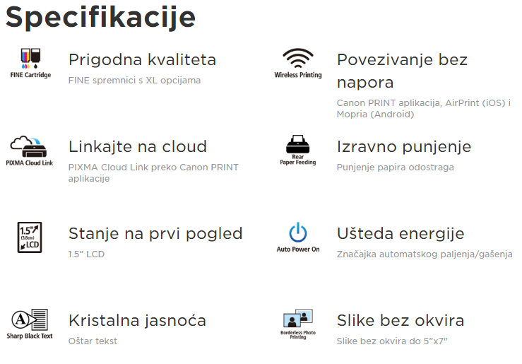 Cijenom pristupačan, moderan i funkcionalan printer tvrtke Canon ovaj povezani uređaj „sve u jednom“ osnovni je alat za jasne dokumente i fotografija bez obruba formata do 5 x 7 inča. PIXMA TS3352 može se pohvaliti bežičnom vezom, jednostavnim 1,5-inčnim monokromatskim LCD zaslonom i spremnicima FINE s XL opcijama za dokumente s oštrim tekstom i živopisne fotografije bez obruba formata do 5 x 7 inča. Uživajte u višestrukoj funkcionalnosti i uglađenom bežičnom povezivanju. Ispisujte, skenirajte i uspostavljajte vezu s računalnim oblakom putem aplikacije Canon PRINT ili ispisujte uz AirPrint (iOS) i Mopria (Android).
