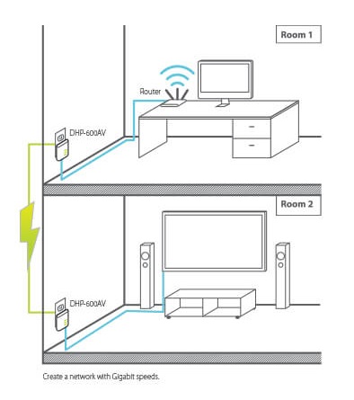 D-Link DHP-P601AV PowerLine AV2 1000 Gigabit Starter komplet olakšava stvaranje velikih brzina mreža do 1000Mbps1. Kit dolazi s dva DHL-P600AV PowerLine AV2 1000 HD Gigabitna prolazna adaptera - Jednostavno priključite jedan adapter u postojeći router da biste pretvorili bilo koju utičnicu u vašem domu u internetsku vezu, a zatim priključite drugi adapter u prostoriju gdje želite proširiti mrežu.