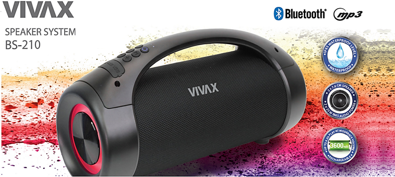 VIVAX Bluetooth zvučnik BS-210 je prijenosni zvučnik. Dolazi s 50 W snage te pruža dubok i snažan zvuk uz reprodukciju do 6,5 sati na srednjoj jačini zvuka.