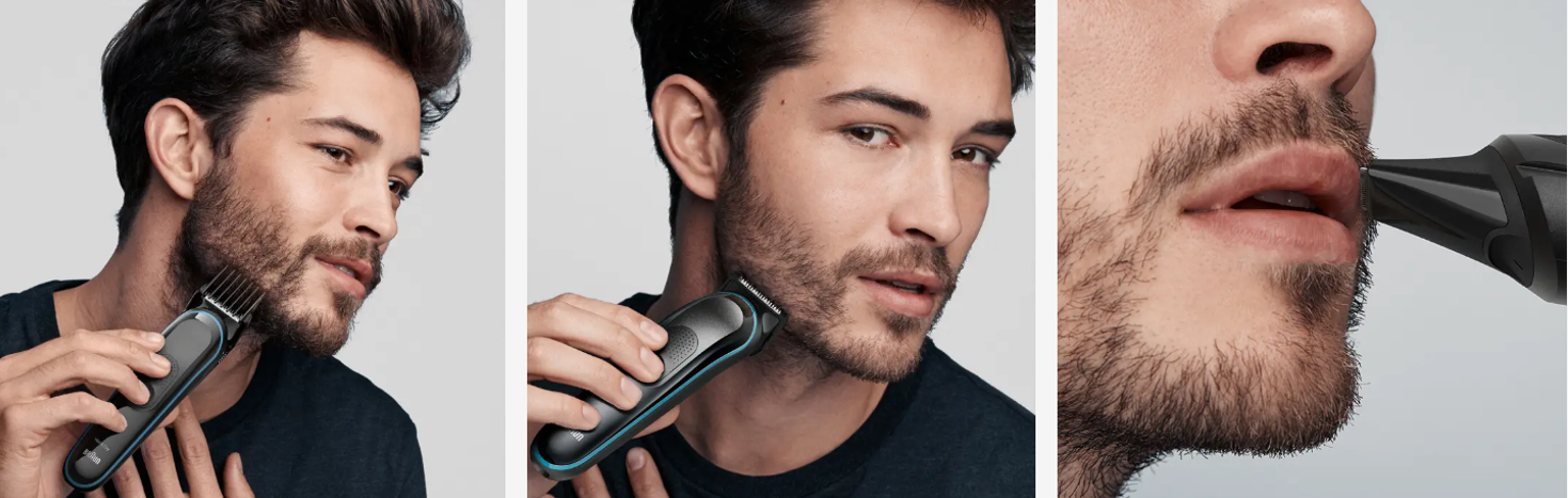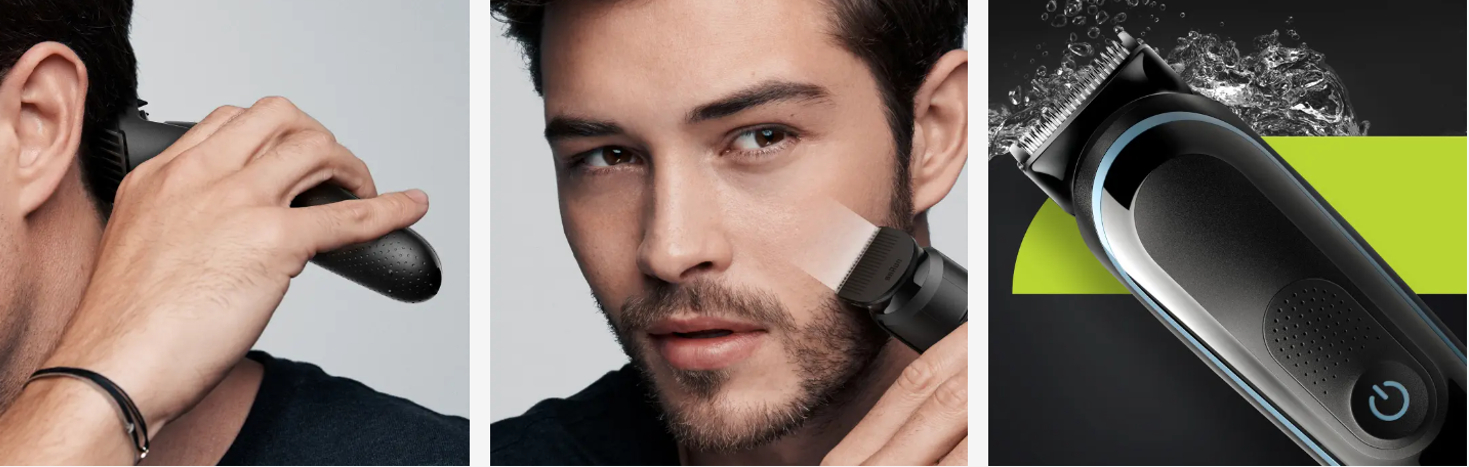 Set za šišanje i brijanje - šišač Braun MGK5345 podrezuje kosu bilo koje duljine od brade i lica do glave. Glava trimera ima veću površinu rezanja koja reže više dlačica svakim prolazom. Postignite izgled koji želite u manje prolaza. Precizni češalj s 20% manje plastike omogućuje jednostavno podrezivanje brkova, kozje bradice, strnjike ili kose. Vrhunski sveobuhvatni komplet za oblikovanje pomaže obaviti 7 poslova ??jednim uređajem.