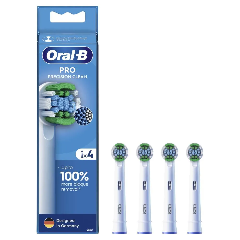 Zamjenska glava za četkice za zube Oral-B EB 20-4 prec.clean ima 3 vrste vlakana za precizno čišćenje. Glave zubne četkice imaju vlakna u obliku slova X koja čiste područja do kojih obična vlakna ne mogu dosegnuti. Stomatolozi preporučuju zamjenu glave zubne četkice svaka 3 mjeseca. Vlakna promjenom boje, na temelju vašeg stila pranja, javljaju kada je vrijeme za zamjenu.