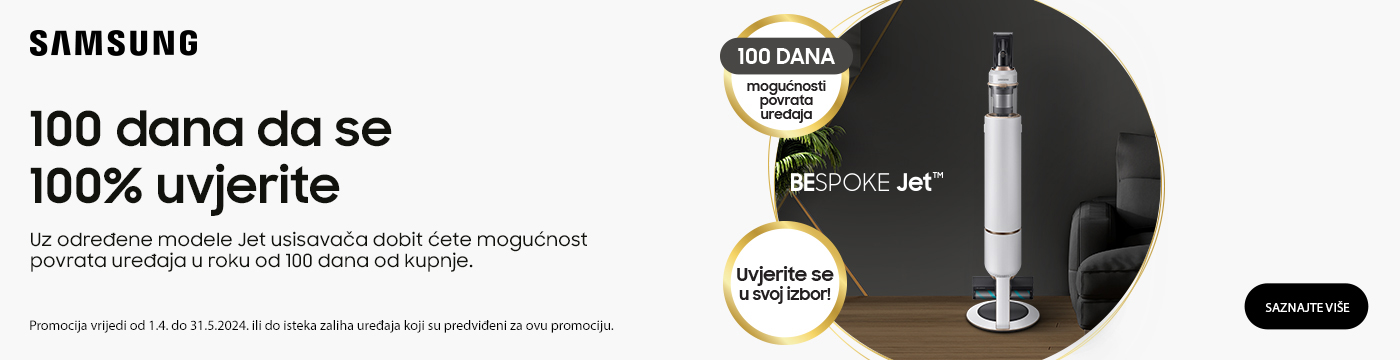 100 dana da se 100% uvjerite u snagu Samsung Jet usisavača