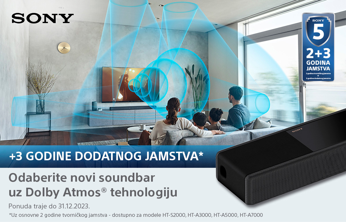 Bezbrižno se prepustite doživljaju Sony soundbarova uz 5 godina jamstva!