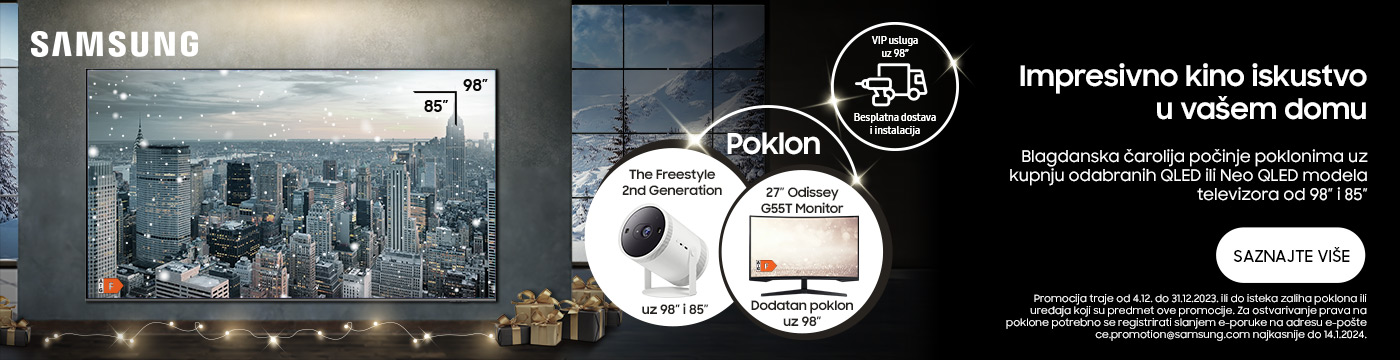 Blagdanska čarolija počinje poklonima uz kupnju odabranih QLED ili Neo QLED modela televizora od 98'' i 85''.