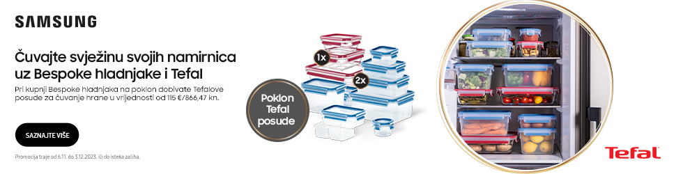 Iskoristite ovu jedinstvenu priliku kako bi namirnice u Vašem hladnjaku uvijek bile svježe. Zato se odlučite za kupnju nekog od modernih i praktičnih Bespoke hladnjaka i na poklon dobivate Tefal posude za čuvanje hrane u vrijednosti od čak 115 €/866,47 kn.*