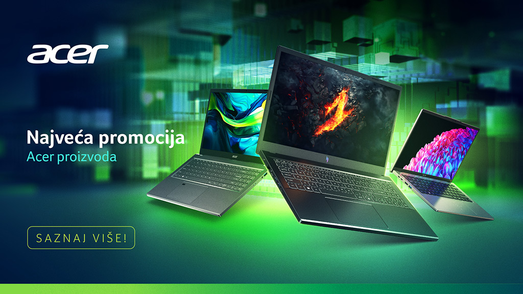 Ostvarite do 40% popusta na odabrane modele Acer laptopa, monitora, stolnih PC računala i projektora uz promo kod*!