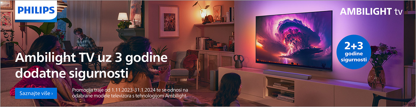 Promocija traje od 1.11.2023. do 31.1.2024. te se odnosi na odabrane modele televizora s tehnologijom Ambilight, uz obveznu registraciju na https://www.tvpromotion.eu/hr/ u roku 30 dana od datuma kupnje.
