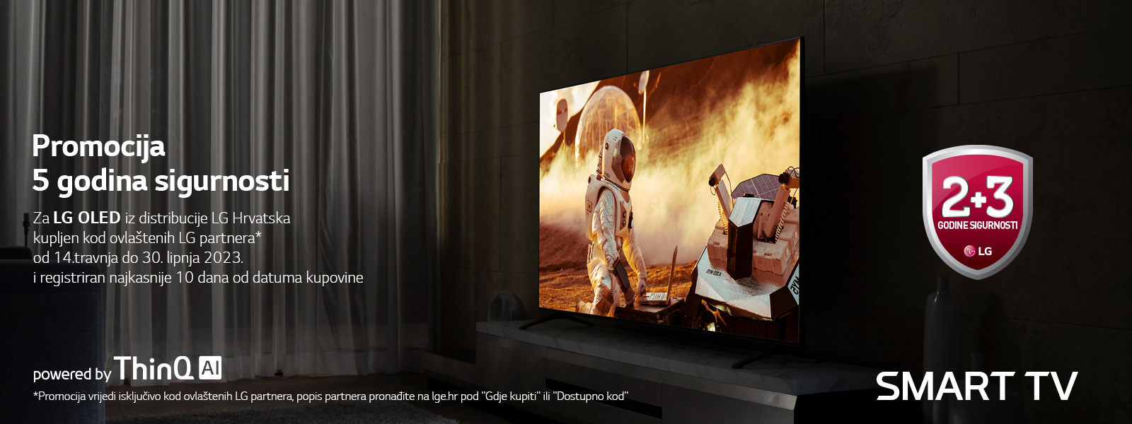 Promocija 5 godina SIGURNOSTI vrijedi samo za proizvode uključene u promociju – LG OLED televizore iz 2022. i 2023. godine kupljene u periodu od 14.4.2023. do 30.06.2023. i registrirane do 15.7.2023.