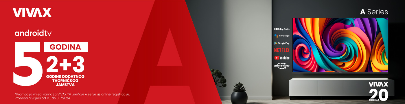 2+3 godine tvorničkog jamstva na sve VIVAX SMART TV uređaje A Serije kupljene u razdoblju od 1.5. do 31.7.2024.