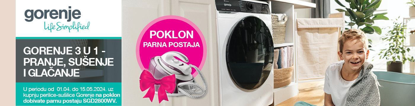 Uz kupnju odabrane perilice-sušilice Gorenje na poklon dobivate parnu postaju