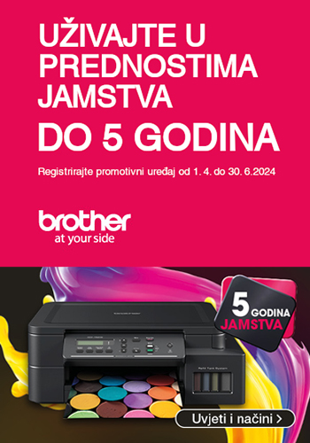 Uživajte u prednostima jamstva do 5 godina na odabrane Brother pisače Vrijedi od 01.04. do 30.06.2024. ili do isteka zaliha!