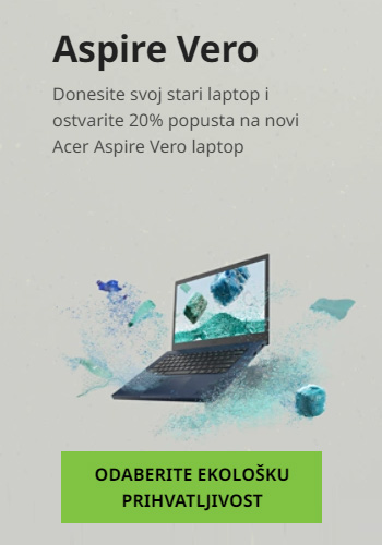 Donesite svoj stari laptop i ostvarite 20% popusta na novi Acer Aspire Vero laptop Vrijedi od 08.02. do 31.03.2023. ili do isteka zaliha!